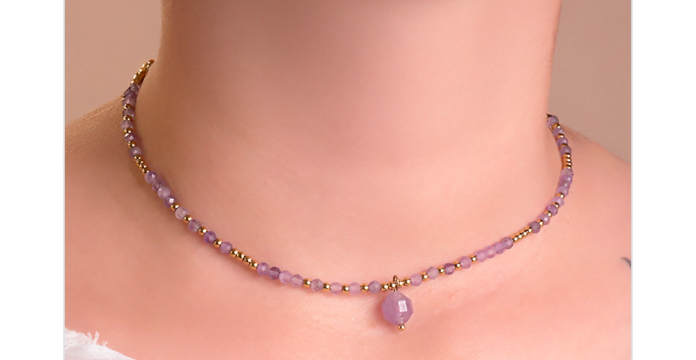 L’améthyste est une variété de quartz aux nuances violettes, allant du lilas pâle au violet profond. Cette pierre majestueuse est appréciée depuis l’Antiquité pour sa beauté autant que pour ses vertus spirituelles. Utilisée en perles, cabochons ou pendentifs, elle attire l’œil autant qu’elle apaise l’esprit.